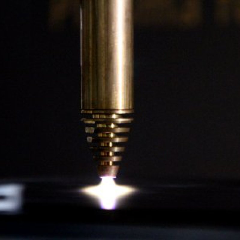 Die Entladung beim T-Spot wird in klassischer Bauweise zwischen einer zentrisch angeordneten Elektrode und der als Gegenelektrode dienden Düse gezündet