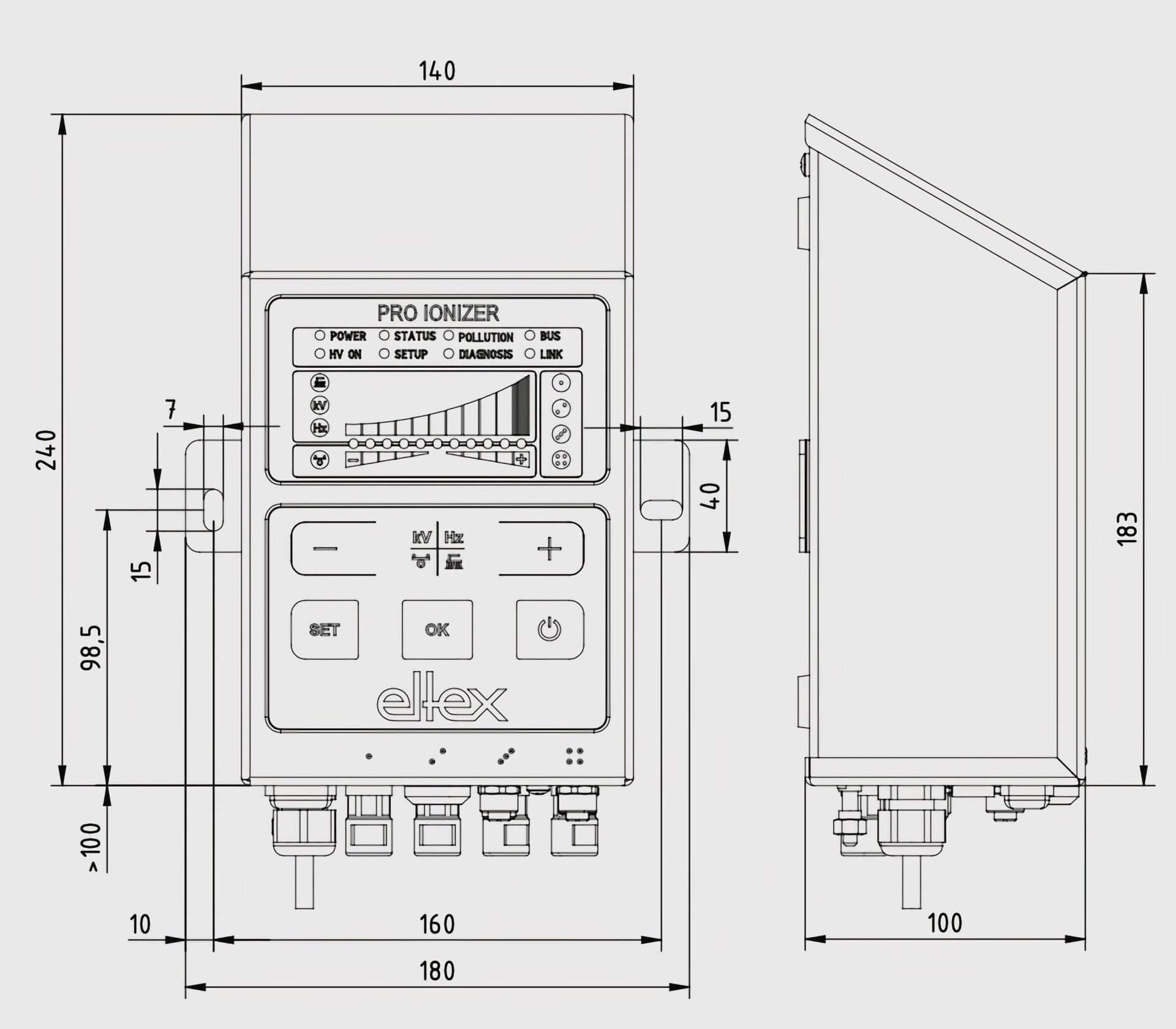 Ein weiteres Highlight des PRO IONIZER ES61 ist sein hoher Bedienkomfort. Benutzer können zwischen einer klassischen Folientastatur, einem Touch-Display und der Integration in externe Systeme über eine Feldbusschnittstelle wählen. Mit dem innovativen Visualisierungssystem Eltex Connected Control – kurz ECC – ist zudem eine komfortable digitale Verwaltung aller angeschlossenen Eltex-Entladeprodukte möglich, inklusive jener Produkte zur Aufladung oder Erdüberwachung.v