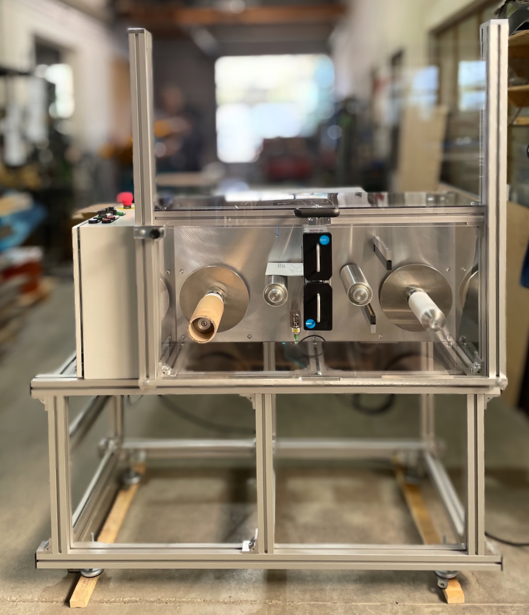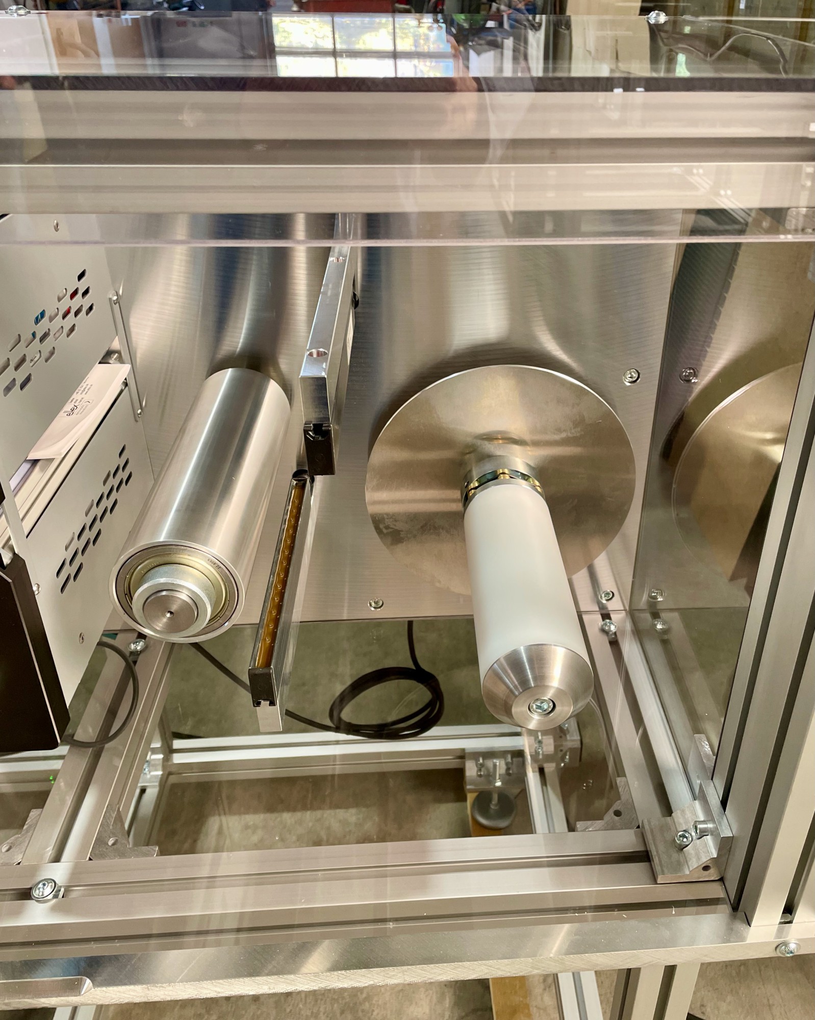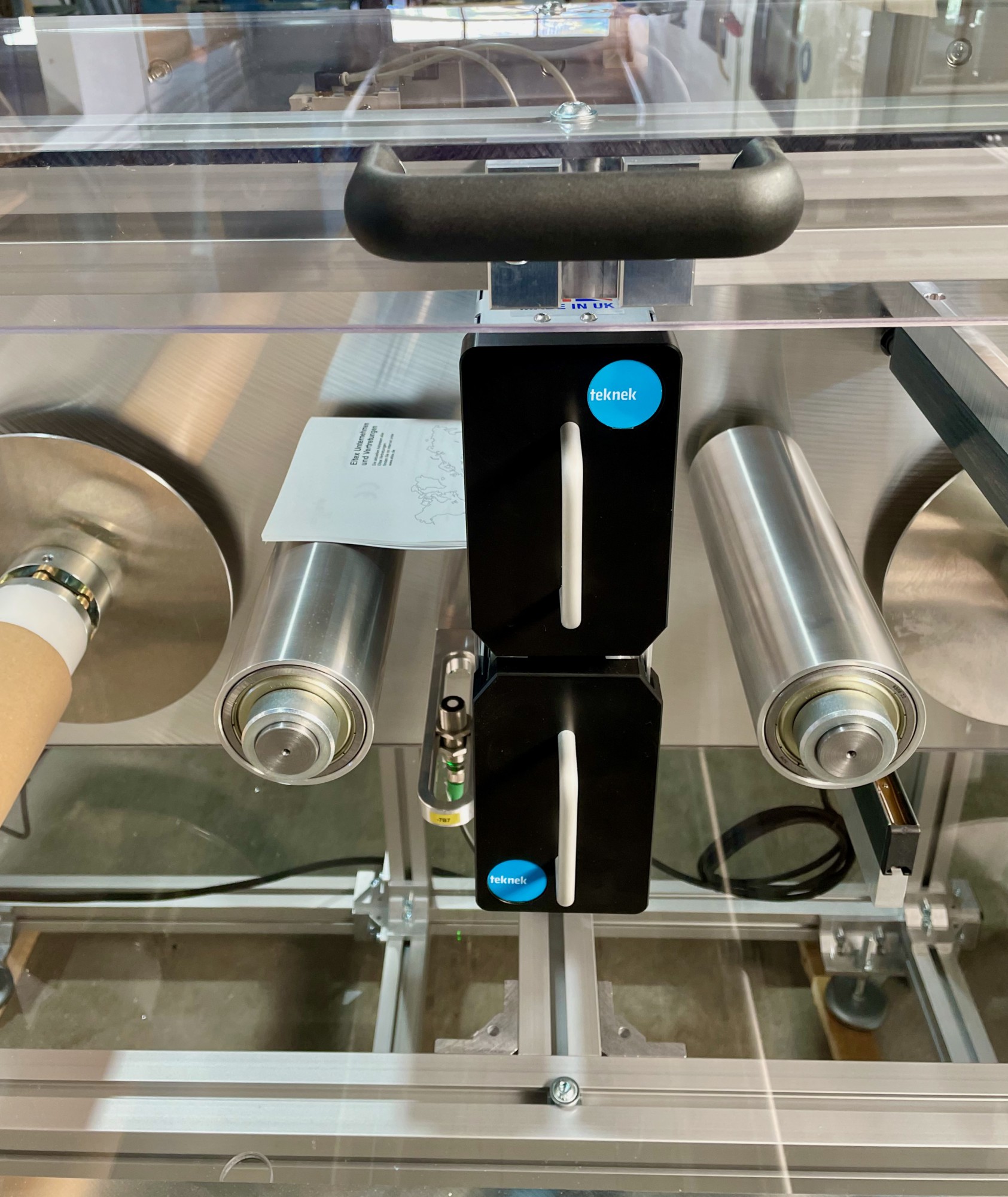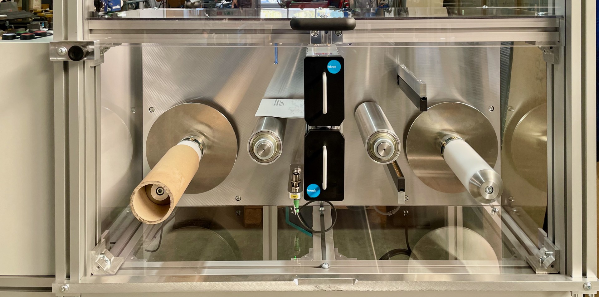 Für einen unserer renommierten internationalen Kunden haben wir kürzlich eine maßgeschneiderte Lösung entwickelt und realisiert, die höchste Anforderungen an Sauberkeit und Präzision erfüllt. Dieses innovative Projekt umfasste die Konstruktion und Fertigung eines speziellen Folien-Umwicklers, der eine fortschrittliche Teknek Bahnreinigung, Eltex Ionisationstechnologie und patentierte "Autofix" Rollenfixierungen für die Wickelhülsen integriert.