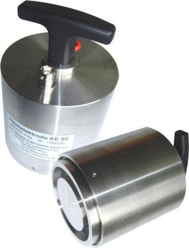 Technische Daten: Elektrode Ø 50 mm, Schutzring Ø 80/70 mm, Gewicht 4,0 kg. Bis 500 V.