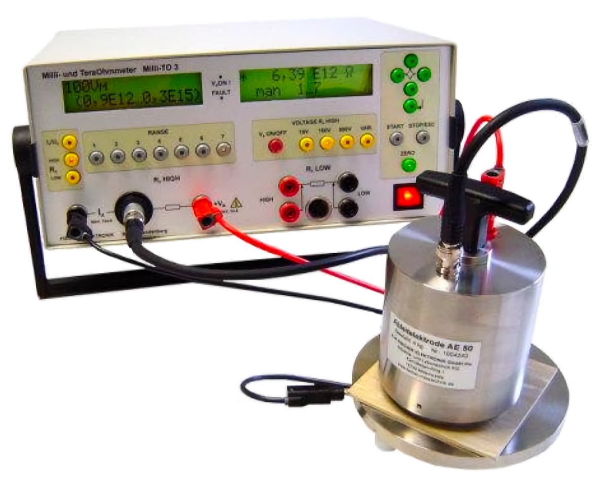 Normen: DIN 54345-1, DIN EN 1149-1, DIN EN 1149-2