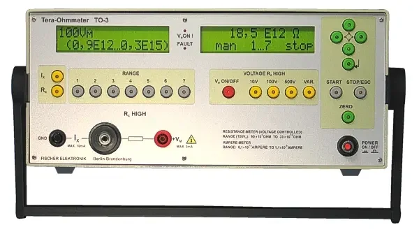 Das Präzisions-Widerstandsmessgerät TO 3, eine konsequente Weiterentwicklung des bewährten TO 2, ermöglicht einfache und zuverlässige Messungen im Bereich von 1 kΩ bis 1,6 PΩ sowie hochgenaue Strommessungen bis in den pA-Bereich .