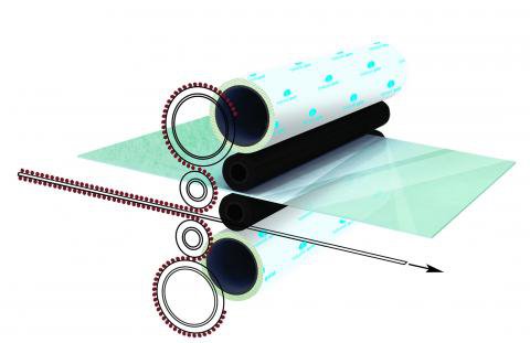 Teknek Adhäsivrollen sind einer der beiden Komponenten des Teknek Cleaning Core. Sie nehmen die aufgenommen Partikel von der Elastomerwalze ab und binden sie.