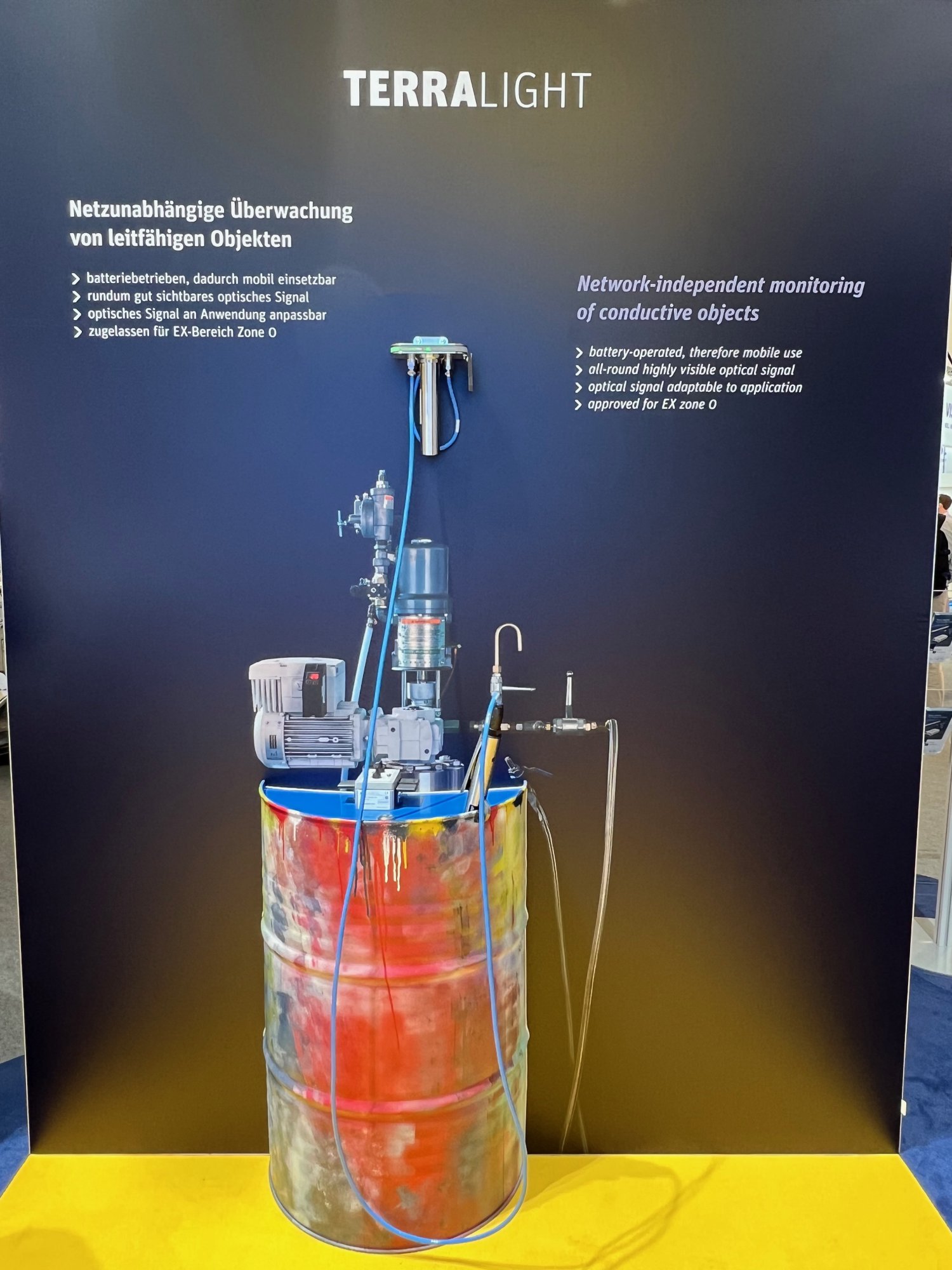 Ein besonderes Highlight war das netzunabhängige Erdüberwachungssystem TERRALIGHT. Dieses batteriebetriebene und mobil einsetzbare System gewährleistet die sichere Überwachung leitfähiger Objekte bei manuellen und nicht in die Prozessüberwachung eingebundenen Vorgängen – und das ohne großen Installationsaufwand. TERRALIGHT bietet maximale Sicherheit in einer kompakten und einfach zu handhabenden Lösung.