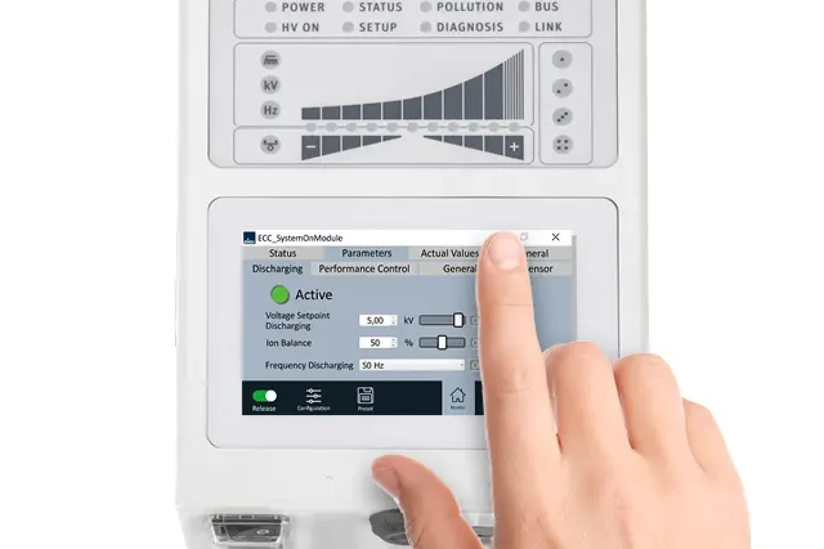 Mit dem PRO IONIZER ES61 haben Sie die Elektrostatik stets im Griff. Die Performance Control ermöglicht individuelle Einstellungen für Spannung, Frequenz und Ionenbalance, um selbst in sensibelsten Prozessen optimale Ergebnisse zu gewährleisten.