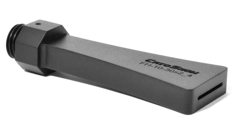 Die Düsen sind strömungstechnisch optimiert und aus schlagzähem, thermisch isolierendem Spezialkunststoff gefertigt, um eine langlebige und effiziente Leistung zu gewährleisten. Dank ihrer robusten Bauweise treten keinerlei Verschleißerscheinungen auf. Flachdüsen ermöglichen Strahlbreiten von über 100 mm (4″) und bieten damit eine schnelle und gleichmäßige Bearbeitung auch größerer Flächen.