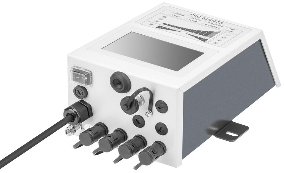 Die Netzgeräte bieten dabei über die Versorgung der Ionisatoren hinaus noch weitere, umfangreiche Funktion. Hier können, je nach Geräteserie, Betriebsparameter beeinflusst oder der aktuelle Status der Entladung abgefragt werden. Durch Schnittstellen und Bus-Anbindung ist somit das Monitoring der Ionisation möglich.