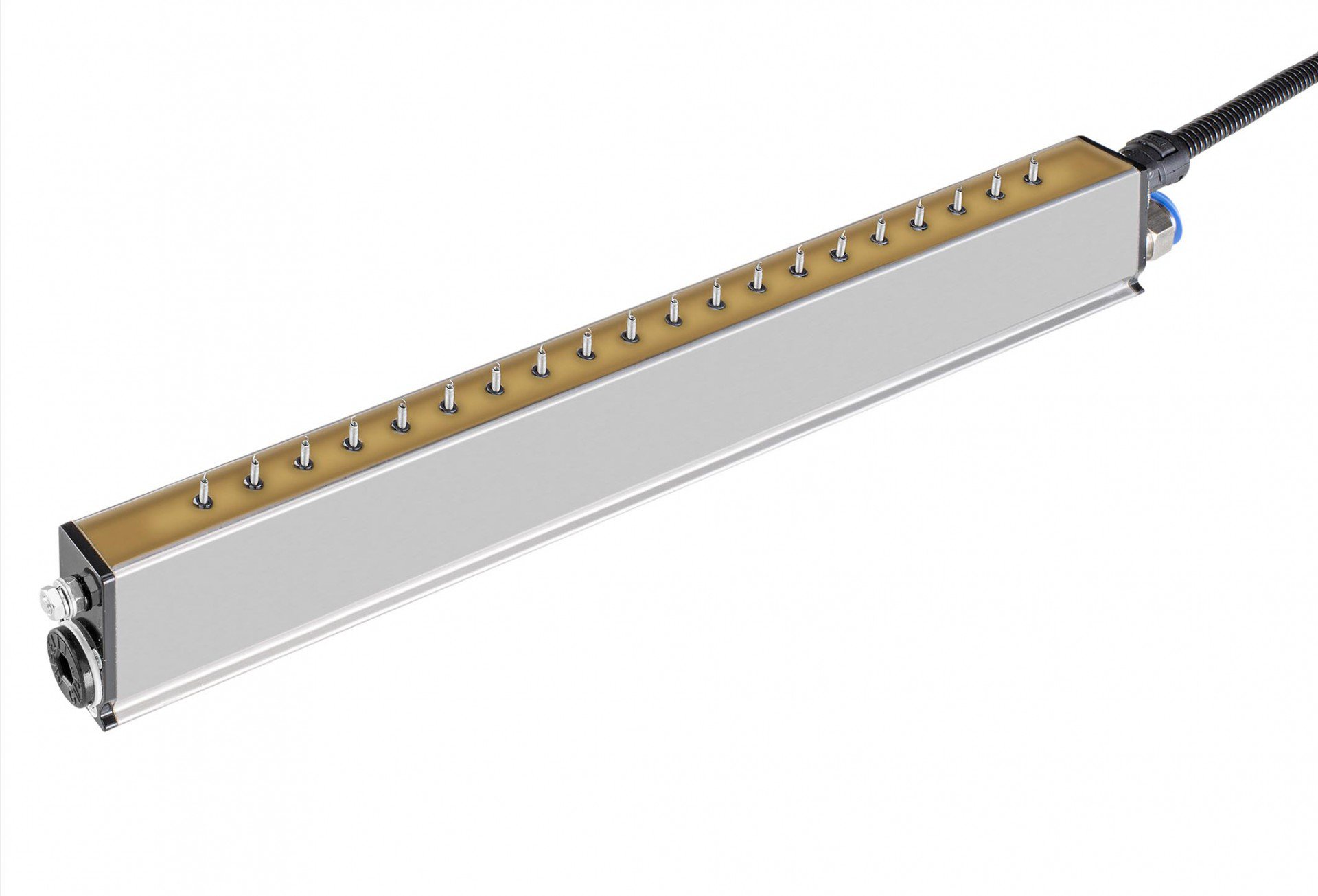 Überall dort, wo große oder wechselnde Abstände überbrückt und sehr hohe Aufladungen beseitigt werden müssen, zeigt die Hochleistung-Entladeelektrode Ionstar RX3 ihre Stärken. Die intelligente Sensorik der Ionstar RX3 erfasst kontinuierlich den Abstand und die vorhandene Aufladung des zu entladenden Objekts und passt die Ausgangsleistung automatisch an die gerade vorliegenden Bedingungen an. Das System bringt hervorragende Entlademöglichkeiten, beispielsweise an Wickler-Systemen.