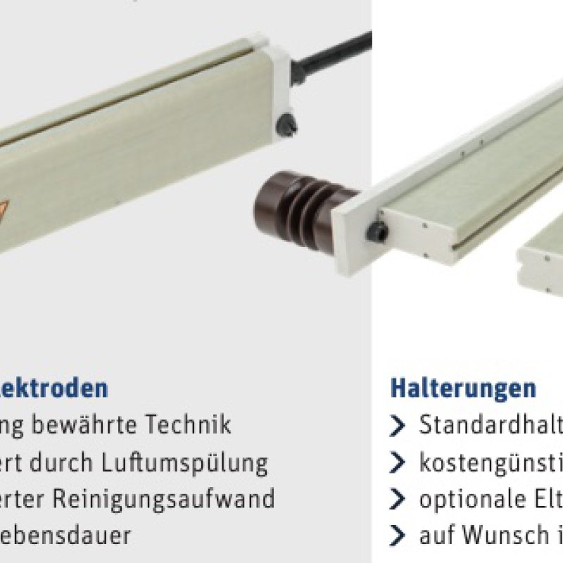 Der Aufbau eines elektrischen Feldes erfolgt mithilfe der Hochspannungsgeneratoren POWER CHARGER in Kombination mit den Aufladeelektroden R130A3 oder den neuen, luftunterstützten Aufladeelektroden R130A3L. Dies gewährleistet ein optimales kantengenaues Verblocken der Papierstränge und verhindert Schlagecken im späteren Verlauf. Zwei oder vier Aufladeelektroden sind ständig zueinander angeordnet.