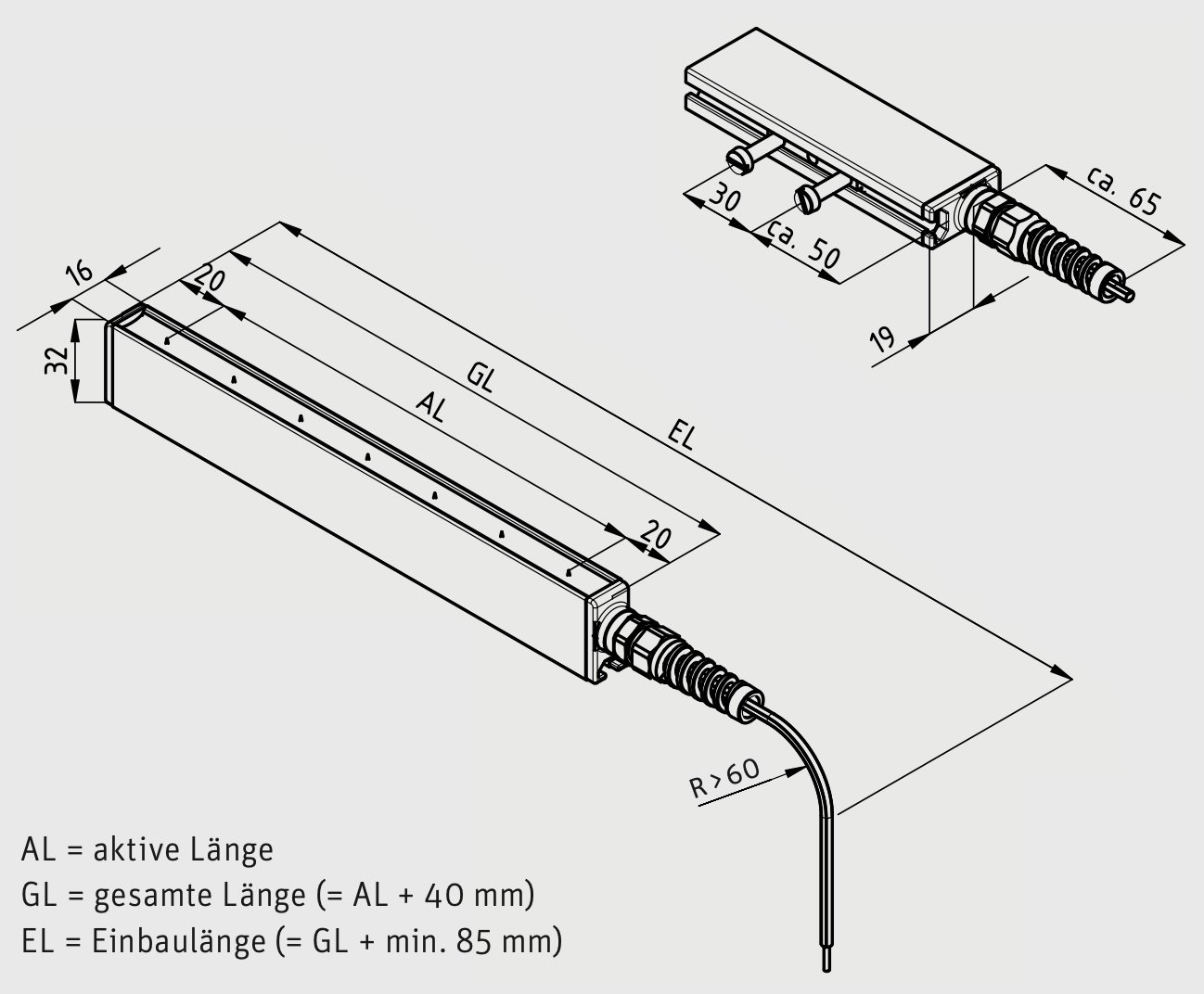 Maße: Die kompakten Abmessungen von 16 x 32 mm (Breite x Höhe) ermöglichen eine einfache Integration in bestehende Produktionsumgebungen ohne großen Raumbedarf.