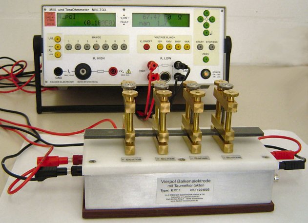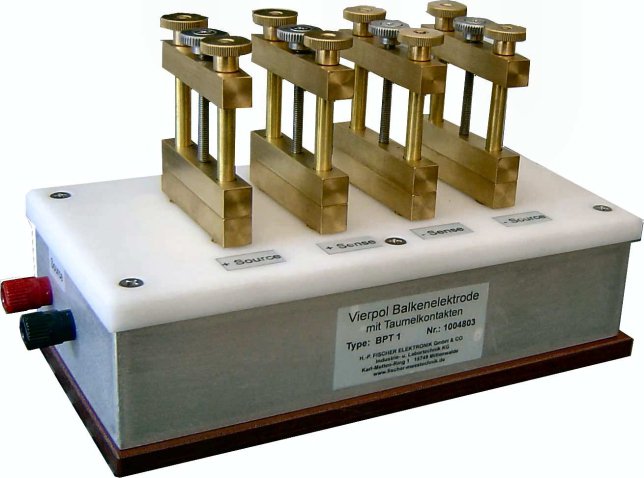 Vierpolmessung mit Messerkontakten. Für elektrische Widerstandsmessung an leitfähigen Materialien.