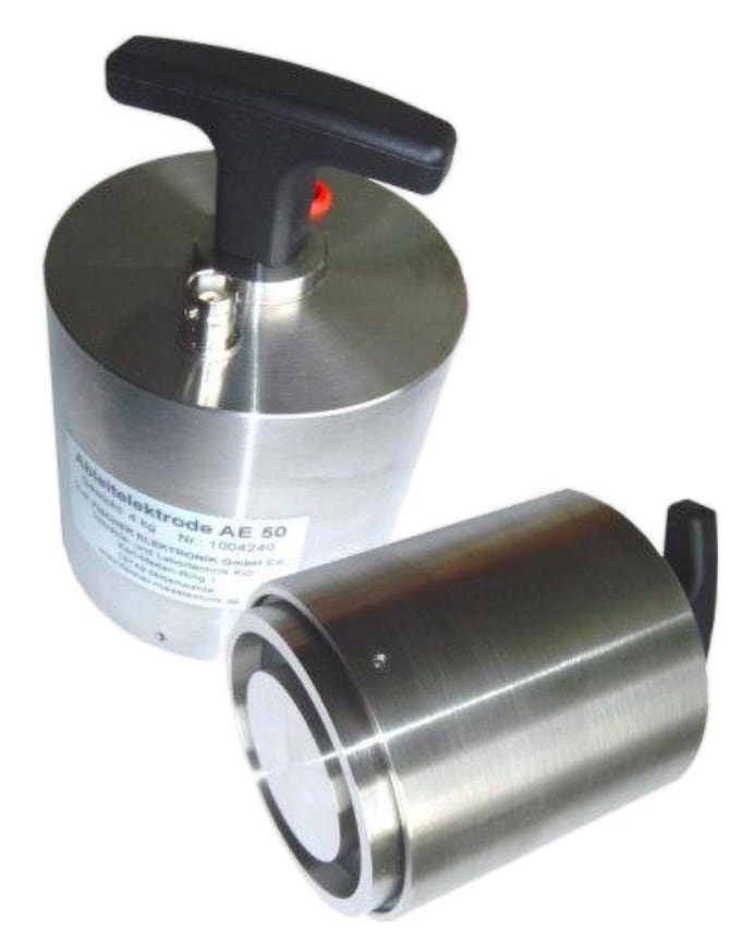 Technische Daten: Elektrode Ø 50 mm, Schutzring Ø 80/70 mm, Gewicht 4,0 kg. Bis 500 V.